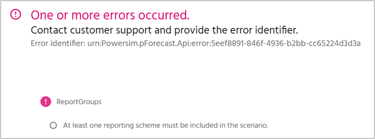 If you encounter an error message like the one below, it is likely that you simply forgot to specify a reporting scheme for your analysis. Return to the Scenario Properties, navigate to the Reporting tab, and enable at least one of the available reporting schemes.