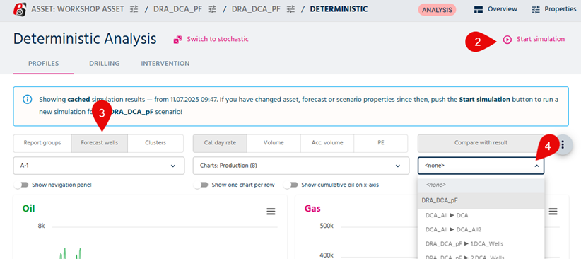 - When the results are shown for your simulation, you will need to select "Forecast wells" button, step 3.